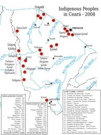 - CDDPH (2007) Peuples autochtones du Ceará. Source : Peuples autochtones du Ceará : organisation, mémoire et lutte. Memorial da Culture Cearense, du Centre d'art et de culture Dragão do Mar. Chercheurs : João Paulo Vieira, Alexandre Gomes et Juliana Muniz.