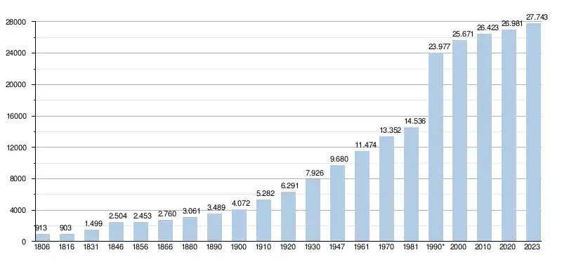- Source : DGS - Remarque: 1806 jusqu'à 1981=recensement; depuis 1990=nombre d'habitants chaque 1er janvier[4]