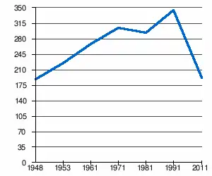 - (sq) « Évolution de la population 1948-2011 », sur pop-stat.mashke.org (consulté le ).