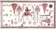 L'un des nombreux drapeaux qu'avait autrefois la communauté Karava, qui représente plusieurs de leurs symboles traditionnels.