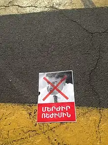 Alors que le Parti républicain avait renoncé à présenter un candidat, l'opposant Nikol Pachinian est le seul candidat en lice pour succéder à Sargsian[7]. Le , l'Assemblée nationale rejette sa candidature par 45 voix pour et 55 contre[8]. Le jour même, Edouard Charmazanov, porte-parole du Parti républicain et vice-président du Parlement, avait déclaré qu'« après la rencontre insatisfaisante d'hier, je suis convaincu que monsieur Pachinian ne peut pas être Premier ministre »[9].