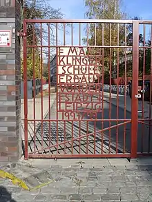 Un portail en fer dans la rue annonce une école par une inscription rappelant le peintre et sculpteur Max Klinger qui a été construite en 1927/28 selon les concepts d'Hubert Ritter et Max Baumeister dans le style de Neues Bauen[6]. Elle est accessible via un pont sur le cours d'eau de la Kleine Luppe. Après une rénovation selon les directives des monuments historiques, elle a été rouverte en 2021 sous le nom de Schule am Palmengarten (litt.: École de Palmengarten). Le coût était de 41 millions d'euros[7].