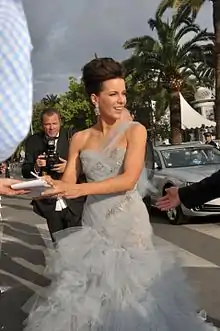 « Je suis déjà venue deux fois. La première fois, c'était une expérience très choquante. J'avais dix-huit ans, je venais de faire Beaucoup de bruit pour rien et mon agent ne m'avait pas dit que je pouvais emmener quelqu'un avec moi, ni rien du tout. Donc j'étais toute seule et je crois que je portais des Doc Martens à bouts métalliques sur le tapis rouge ! Je ne savais pas ce que je faisais. Nous n'avions pas [la même préparation qu'en Amérique], en Angleterre. Nous n'avions pas de coiffeurs et maquilleurs. On se pointait comme ça en espérant juste qu'on n'avait pas de taches sur nos habits. Et je me souviens avoir monté les marches jusqu'à la salle de projection en pensant : « Waw, c'est comme aller à un concert de rock ! » Ça fait du bien de revenir maintenant que je suis plus mature et que j'ai un peu plus l'habitude de ce genre d'événements. »