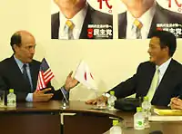- (en) Kyodo, « DPJ leader Okada to visit U.S. July 27 », BNet, 13/07/2004