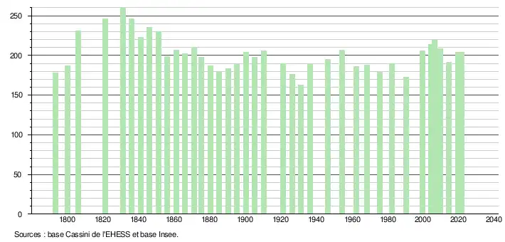 - Fiches Insee - Populations légales de la commune pour les années 2006, 2007, 2008, 2009, 2010, 2011, 2012, 2013, 2014, 2015, 2016, 2017, 2018, 2019, 2020 et 2021.