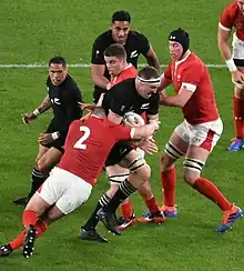 Le , il est retenu par Warren Gatland dans la liste des trente joueurs gallois qui disputent la Coupe du monde de rugby à XV 2011[101], profitant notamment des blessures de Rees et Hibbard, alors qu'il n'a encore jamais joué de match avec l'équipe du pays de Galles. Il honore sa première cape internationale le lors du troisième match de poule contre l'équipe de Namibie, lorsqu'il entre en jeu en deuxième mi-temps. Les Gallois l'emportent 81 à 7[3]. Il s'agit de son seul match joué dans la compétition, à la fin de laquelle les Gallois terminent à la quatrième place.