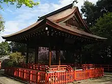 Le kagura-den de Kenkun-jinja, (bâtiment des sanctuaires shinto consacrés à Nō, c'est-à-dire la figure sacrée de la danse kagura).