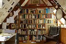 Dans son livre déjà cité[133], Olivier Delbard aborde les différents lieux-dits « d'errance et de résidence » et il écrit :« Le voyage, le déplacement, est un élément indispensable pour White ; il permet de capter le mouvement et le foisonnement de la vie, et de ne pas réduire le terrain à la seule carte, élément de découverte certes, mais aussi abstraction du réel[143] ». Chaque lieu où vit Kenneth White, qu’il y passe ou y séjourne — lieu de voyage ou de résidence — n’est donc pas motivé par une recherche du pittoresque des voyages, mais s’avère l’étape d’un itinéraire autant géographique qu’intérieur. Tout commence en Écosse, son pays natal qu'Olivier Delbard décrit ainsi : « L'identité de l'Écosse se précise donc : elle est fortement singulière, marginale, pré-chrétienne, monde froid et blanc, isolé et difficile [144] ». Après Gourgounel en Ardèche, Pau, en Aquitaine, l’élection de la côte nord de la Bretagne pour une existence sur le littoral, n’est pas l’effet du hasard[145]. La Maison des marées, publié en 2005, est un livre qui dépeint le lieu d’élection de Kenneth et Marie-Claude White, après leur vie aux pieds des Pyrénées. Voilà le poète cosmographe[146] bien campé sur le littoral breton, en phase avec la côte écossaise dont il est originaire. Lieu qu’il évoque comme celui de la concentration, à force d’un travail intense qu’il y mène dans ce qu’il nomme, dès 1994, son atelier atlantique[N 6] qui est devenu un lieu de rayonnement. Kenneth White donne la description de son lieu : « Je reviens dans mon atelier. Je n’ai jamais fait un catalogue raisonné des images que je garde autour de moi pour les mauvais jours, et peut-être pour les moins mauvais, mais si je jette un coup d’œil sur les murs et sur les étagères, je vois : [suit une liste en dix lignes, décrivant cartes, photographies, objets divers] […]. De tout cela se dégage sans doute quelque chose comme une sensation abstraite, une sensation de monde, et peut-être une ébauche, un brouillon de poème, peut-être pas autre chose qu’une sorte de ghost dance de l’esprit[148] ». Le nom donné au lieu en reflète l’esprit : « Nous avons décidé de l’appeler Gwenved. C’est un vieux mot breton […] signifiant littéralement « pays blanc », il indique un lieu de lumière et de concentration[149] ». La notion de « concentration » est importante dans le rapport que l’auteur entretient avec les lieux de résidence, déjà présente lors d’un épisode antérieur, lors de l’installation ardéchoise à Gourgounel : « J’avais cherché un lieu désert où concentrer, du moins pour un temps, ma vie et ma pensée[150] ».