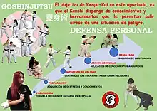 Goho correspond à l'apprentissage du système dur, qui utilise des coups de poing, des blocages, des esquives... Juho (柔法) Méthode douce. Le Juho correspond à l'apprentissage du système doux, c'est une méthode de combat qui correspond à des prises, des projections, des immobilisations, des étranglements et des luxations articulaires. Gojuho (剛柔法) Méthode hybride. Le système hybride Gojuho est le mélange des deux précédents, en les combinant de la manière la plus efficace ; c'est le système d'autodéfense le plus complet pratiqué dans le Kenpō Kai et donc une méthode efficace d'autodéfense.