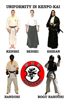 Le grade Dan en Kenpō Kai, du plus bas au plus haut, la couleur de la ceinture, est toujours noire dans tous les grades :