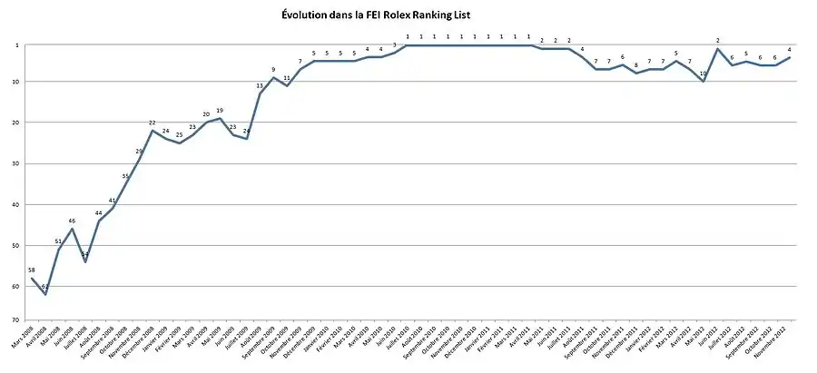 Il est resté numéro 1 mondial de à . Il est installé au sein de ses propres écuries à Pennedepie, en Normandie.