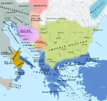 Pressiyan 1er, petit-fils d'Omourtag, devient knèze des Bulgares en 836. Sous son règne, la Bulgarie s'étend vers le Sud-Ouest en annexant les régions de l'actuelle Albanie et de la Macédoine. Le fils de Pressiyan, Boris 1er, hérite d'un véritable empire allant de l'Adriatique à la mer Noire et de la Ruthénie subcarpatique aux portes de Salonique, d'Andrinople et de Constantinople. Dans ce vaste état, la lingua franca est le vieux-slave (appelé par la suite, « vieux-bulgare »)[8].