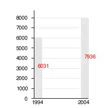 Ce centre urbain a connu, de 1994 à 2004 (années des derniers recensements), une hausse de population, passant de 6 031 à 7 936 habitants[1].