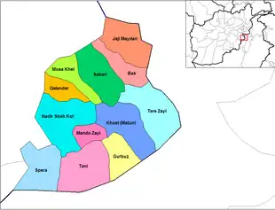 Khost est une province du Sud-Est de l'Afghanistan, dont la capitale est Khost, divisée en plusieurs communes qui sont : Matoon, Zazay, Tanay, Spira, Sobari, Nader shah kot, Qalandar, Mosakhel et Mandozay.