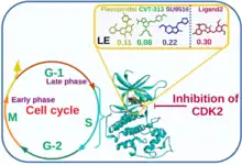 Le flavopiridol est également un inhibiteur de CDK en phase de test clinique après avoir été identifié en 1992. Il agit en compétition avec l'ATP pour la fixation sur les CDK[9].