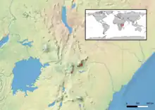 Aire de répartition de l'espèce Kinyongia excubitor selon l'UICN (consulté le ).