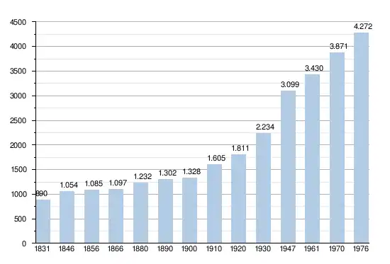 - Sources : INS, Rem. : 1831 jusqu'en 1970 = recensements, 1976 = nombre d'habitants au 31 décembre[2].