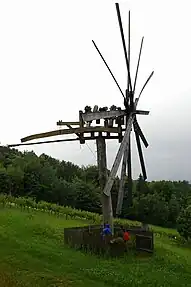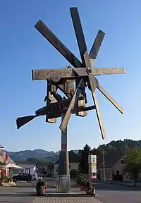 - vetrnica (voile ou petit moulin à vent) - tourne dans le vent et entraîne la rotation de l'axe ; fabriqué en bois de peuplier ou de sapin. Les moulins de Slovenske Gorice ont quatre pales, tandis que ceux de Haloze en ont six et celui de la Styrie autrichienne a huit pales.