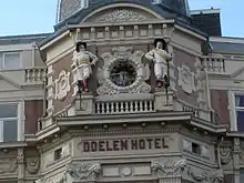 Le Kloveniersdoelen était l'un des trois doelens (champs de tir) de la garde civique d'Amsterdam, aux côtés du Handboogdoelen (en) et du Voetboogdoelen (en), tous deux situés le long du canal Singel. Des trois, seul le Handboogdoelen a survécu. L'emplacement du Kloveniersdoelen est aujourd'hui occupé par l'hôtel Doelen du XIXe siècle. Le bâtiment néo-Renaissance contient certains des murs et fondations d'origine du Kloveniersdoelen. Deux kloveniers sont représentés sur la tour en forme de dôme de l'hôtel. À l’origine, ils possédaient des mousquets, mais ceux-ci ont disparu.