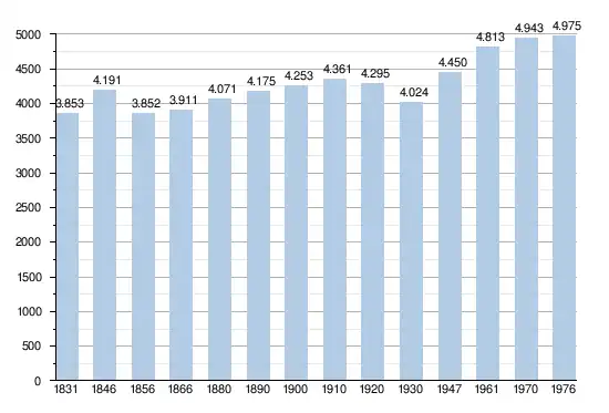 - Sources : INS, Rem. : 1831 jusqu'en 1970 = recensements, 1976 = nombre d'habitants au 31 décembre[4].