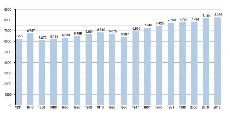 - Source: DGS , de 1831 à 1981=recensements population; à partir de 1990 = nombre d'habitants chaque 1 janvier