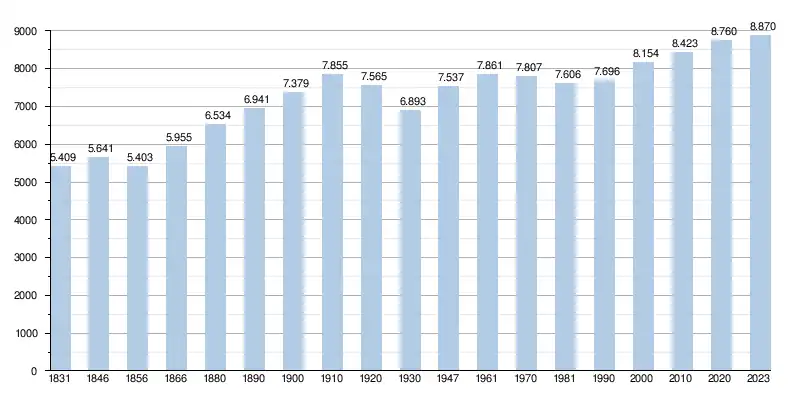 - Source : DGS - Remarque: 1831 jusqu'à 1981=recensement; depuis 1990=nombre d'habitants chaque 1er janvier[6]