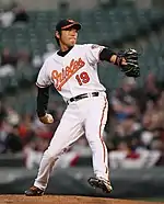Il signe ses débuts en MLB par une victoire face aux Yankees de New York le 8 avril[3]. Il est le premier Japonais à jouer pour les Orioles[4].