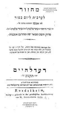 - Voir notamment Aroukh Hachoulhan 619:2 & Philip Birnbaum, High Holyday Prayer Book, Hebrew Publishing Company, NY, 1951.