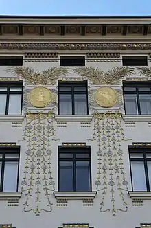 - Décorations de la façade du Wienzeile 38, immeuble d'Otto Wagner