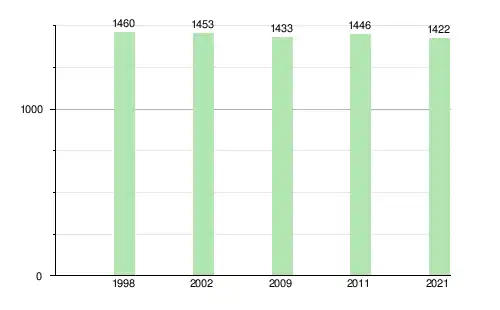 En 2021, le village de Kombornia comptait 1 422 habitants, en diminution de −2,6 % par rapport à 1998[6]. En 2021, 59,8 % des habitants du village de Kombornia sont en âge de travailler (entre 18 et 64 ans pour les hommes et 18 et 59 ans pour les femmes). 21,1 % des habitants ont moins de 18 ans et 19,1 % ont l'âge légal de la retraite. Les personnes en âge de travailler représentent 58,3 % de la population de la voïvodie des Basses-Carpates et 52,4 % de la population de Pologne. Ainsi, le taux de dépendance démographique du village de Kombornia est équivalent à celui de la voïvodie des Basses-Carpates et inférieur à celui de la Pologne[7].