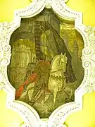 - la remise des bannières de commandement des gardes soviétiques sur la place Rouge en présence de Staline. Elle fut remplacée depuis par une mosaïque représentant Lénine prononçant un discours sur cette même place