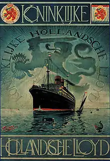 Affiche de 1913 pour la Koninklijke Hollandsche Lloyd réalisée par Tiete van der Laars.