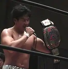 Le , le jour de son 21éme anniversaire, il bat Daisuke Sasaki et remporte le KO-D Openweight Championship et devient le plus jeune champion de l'histoire du titre, battant le précédent record détenu par Nosawa Rongai[4],[5],[6],[7]. Lors de Ryogoku Peter Pan 2016, il perd le titre contre Shuji Ishikawa[8],[9].
