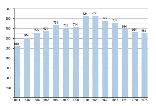 - Sources : INS, Rem. : 1831 jusqu'en 1970 = recensements, 1976 = nombre d'habitants au 31 décembre.