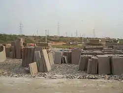 La pierre de Kota, Kota stone en anglais, est un calcaire gris parfois bleuté, utilisé en plaques pour les revêtements de sol ou muraux. Elle est extraite en grande quantité sur une surface de 150 km2 à l'ouest de Kota. La production est passée de 100 000 tonnes par an en 1996 à 500 000 tonnes en 2010. L'exploitation génère 13 000 000 m3 de déchets stériles par an[1], qui sont épandus en une multitude de terrils sur les terres agricoles avoisinantes donnant au paysage de désolation lunaire à la campagne située à l'ouest de la ville de Kota.