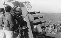 En 1944 son armement AA est renforcé de 6 affûts doubles de 100 mm Minizini, recevant 4 canons de 37 mm AA et deux mitrailleuses de 12,7 mm supplémentaires, puis avec la suppression du hangar et de la catapulte Heinkel, de deux affûts quadruples de 12,7 mm sur ses tourelles supérieures[6]. Il fut peut-être équipé d'un canon Oerlikon de 20 mm[7].