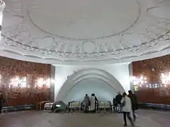 En 1952, est installé le premier portillon d'accès du système de métro moscovite. Un second vestibule, construit au rez-de-chaussée d'un des gratte-ciel staliniens (d'après les travaux de l'architecte Alexeï Douchkine), est achevé en 1953.