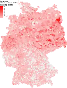 Krause (kraus signifie frisé) est un nom de famille très répandu en Allemagne dont il existe de nombreuses variantes, telles que Krauss ou Kraus.