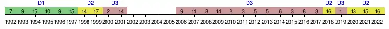 La frise ci-dessous résume les classements successifs du club en championnat d'Ukraine.