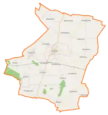 Outre la ville de Krobia, la gmina inclut les villages et les localités de :