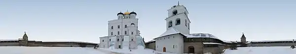 - (ru) Cet article est partiellement ou en totalité issu de l’article de Wikipédia en russe intitulé « Псковский Кром » (voir la liste des auteurs).