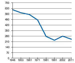En 2002, l'âge moyen de la population était de 44,8 ans pour les hommes et 48,8 ans pour les femmes[4].