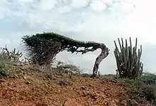 Un vent constant de plus de 70 km/h réduit de beaucoup la croissance de l'arbre et conduit éventuellement à sa mort[2].
