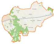La gmina couvre une superficie de 106,31 km2 pour une population de 5 636 habitants en 2011.