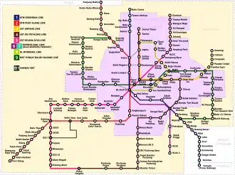 - la ligne de métro automatique Kelana Jaya (46 km, 37 stations, 254 000 passagers quotidiens) est inaugurée en 1998 mais prolongée de manière sensible en 2016 (17 km).
