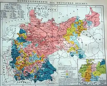 Les sécularisations et les expropriations des biens de l'Église pratiquées durant l'occupation napoléonienne changent les rapports de force et la relation entre État et Église. Au moment de la création de l'Empire allemand, les catholiques (dont les Lorrains, Alsaciens et Polonais) représentent un tiers de sa population, contre deux tiers pour les protestants. Il n'y a pas de religion d'État, cependant l'État paie les traitements des prêtres, entretient les lieux de culte et les facultés de théologie se trouvent dans les universités sous son contrôle. L'État a également son mot à dire lors de la nomination des évêques[4].