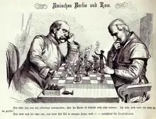 Le chancelier de l'empire, Otto von Bismarck, artisan de cette nouvelle unité allemande accomplie par les armes, se préoccupe à présent d'assurer sa stabilité, ce qui implique un pouvoir indiscuté sur le plan intérieur. Ses deux principaux adversaires, ceux qu’il appelle « les ennemis du Reich », sont les socialistes et les catholiques[1].