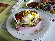 Ce mets consiste en une pomme de terre assez grosse, enveloppée de papier aluminium et cuite au four, puis fourrée d'ingrédients divers.