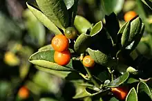 - Fortunella margarita (Lour.) Swingle - Kumquat Nagami (à fruit ovale 1,6 à 2,5 mm de diamètre) cultivar Nordmann seedless, Centennial Variegated à feuilles légèrement striées de jaune pâle et crème[18] ;