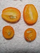 - Fortunella japonica (Thunb.) Swingle - Kumquat rond[17] ou Kumquat Marumi. Plus tolérant au froid que F. margarita ;